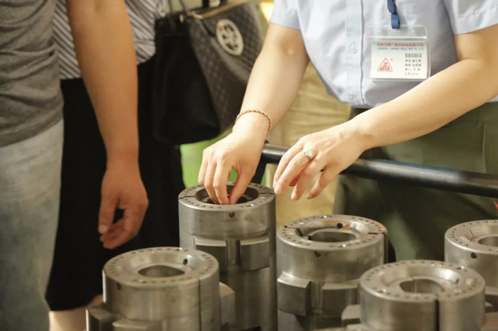 赵总向大家介绍:工厂采用的是流水化生产线区域化运作模式;每个工作区域必须经过“首检—自检”的流程,团队共同承担岗位责任。同时,团队严格管控生产质量,不仅促进管理公平化、更是提高了团队的工作效率。