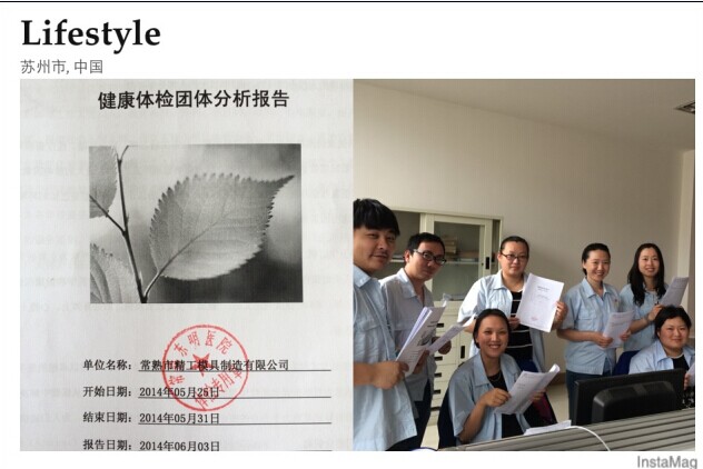 精工模具一直以来秉承“科技兴厂,以人为本”的经营理念,员工是企业健康可持续发展的保障,关爱员工的健康是公司份内之事,为此精工模具于2014年5月份组织全体员工,分二批进行了较为全面的健康体检。