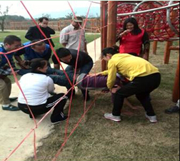 拓展培训教练带领我们用做集体游戏的方式,开导我们多向思维的能力,用游戏来体现日常工作中会出现的问题,完成一个游戏后一般都会做一个总结,总结我们成功和失败的关键点。教练的要求十分严格,整个团队在这个时候显示了无穷的力量,相互信任,总结经验,不断挑战,永不言弃。